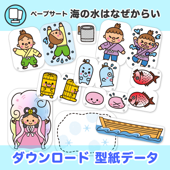 日本昔話「海の水はなぜからい」をもとにしたペープサート教材です。